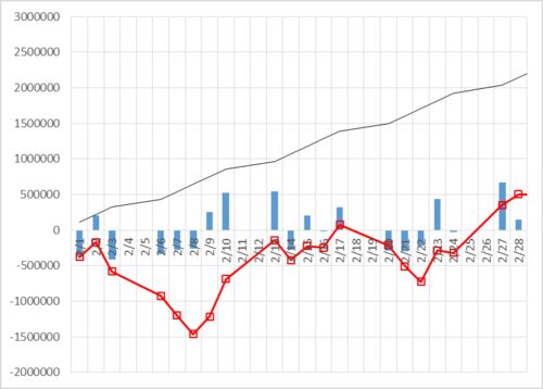 何とか挽回しました。 ドローダウンの最下点から+200万ほど稼いでいるため、徐々に復調しているような気がします。
